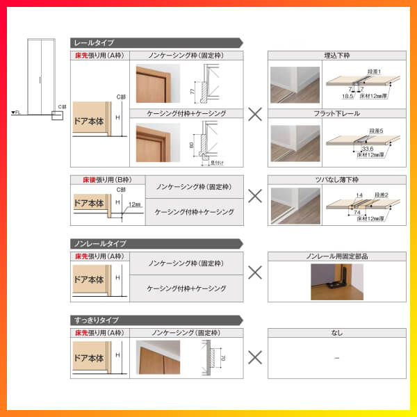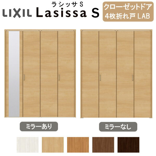 クローゼットドア 扉 4枚 折れ戸 ラシッサ S レールタイプ パネルタイプ LAB 把手付 ケーシング枠 1223/13M23/1623/1723/18M23 ミラー付/なし 押入れ 折戸 交換 木製建具 内装ドア リフォーム DIY