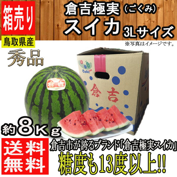 【鳥取県産】倉吉すいか スイカ 西瓜 3Lサイズ 1玉8kg以上【秀品】お中元 ギフト 贈答 お中元 のし ラッピング 可【常温便送料無料】(北海道沖縄別途送料加算)【西日本産 低農薬・特別栽培農産物】