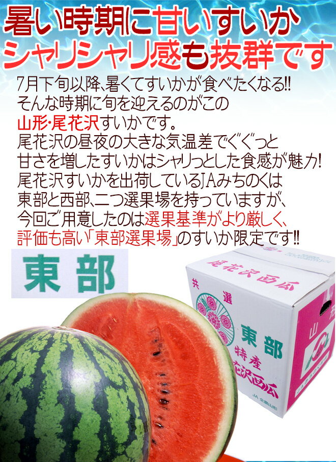 山形県産 尾花沢すいか 1玉(秀品/1玉 約8kg)【あす楽対応/山形産/尾花沢産/すいか/スイカ/西瓜/大玉/尾花沢スイカ/ギフト/贈り物/お中元/夏ギフト/暑中見舞い/残暑見舞い/最安値に挑戦/果物/フルーツ/人気/売れ筋/送料無料/山形県/お取り寄せ】