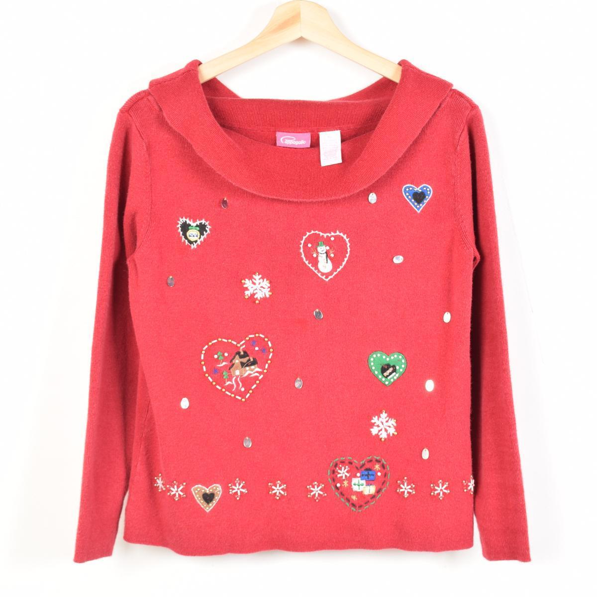 ハート柄 モチーフ柄 ビーズ刺繍 オフタートルネック コットンラミーニットセーター レディースM Pappagallo /wex8484 【中古】 【170211】【US1803-1】【SS1806】