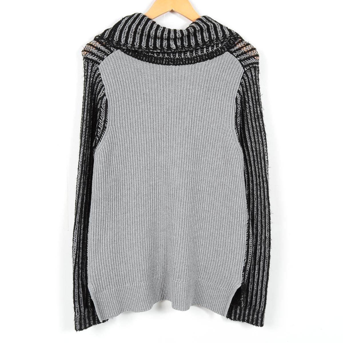 ダナキャランニューヨーク ストライプ柄 切替 オフタートルネック コットンニットセーター レディースXL DKNY JEANS /wex5947 【中古】 【161208】【SS1709】【SS1801】【CS1802-2】【US1803-1】【PD1804-5】【SS1806】